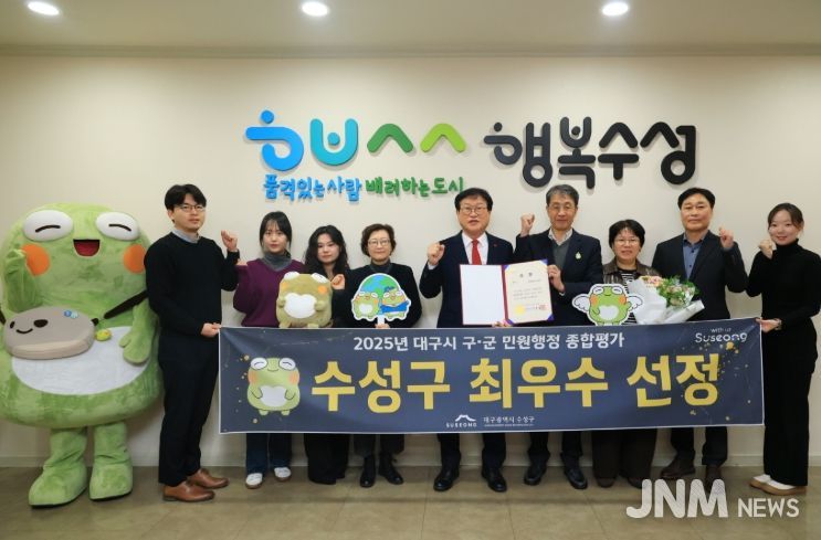 제이앤엠뉴스 | 대구 수성구는 대구시가 주관한 ‘2025년 구·군 민원행정 종합평가’에서 최우수 기관으로 선정됐다고 24일 밝혔다.
