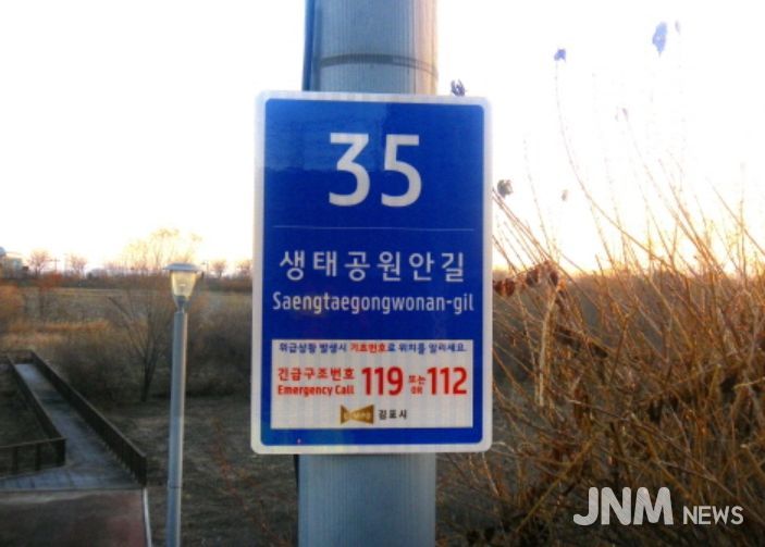제이앤엠뉴스 | 김포시는 김포한강야생조류생태공원 내 주소 안내시설을 확충해 위급상황 발생 시 기초번호판을 활용한 정확한 위치 신고가 가능하도록 했다고 밝혔다.