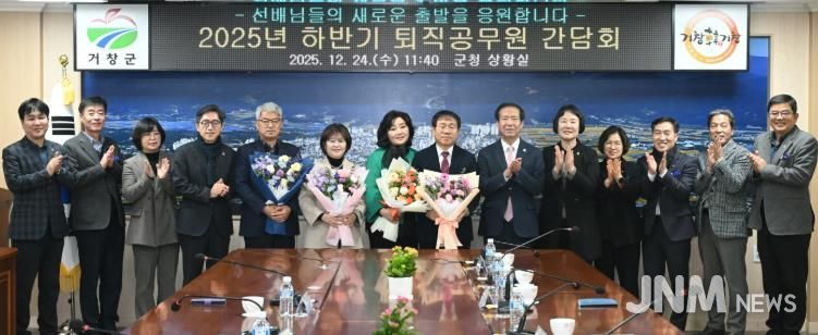 제이앤엠뉴스 | 거창군은 지난 24일 군청 상황실에서 퇴직을 앞둔 공무원들의 공직생활의 노고와 헌신에 대한 감사를 전하기 위해 ‘2025년 하반기 퇴직공무원 간담회’를 개최했다.