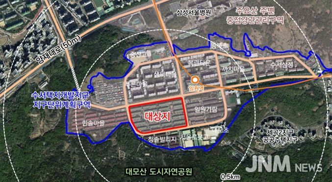 상록수아파트는 1993년에 준공된 대모산 자락에 위치한 노후단지로, 이번 정비계획을 통해 용도지역이 제2종일반주거지역(7층이하)에서 제2종일반주거지역으로 변경되고, 최고 25층 공동주택 1,126세대 규모(임대 74세대 포함)의 자연경관과 어우러지는 주거단지로 조성된다.
