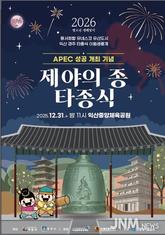 시 관계자는 "이번 제야의 종 행사는 익산과 경주의 공동 성과를 기념하고, 시민과 함께 새해 희망을 나누는 상징적인 자리"라며 "2026년 병오년 새해를 따뜻한 마음으로 시작할 수 있도록 정성을 다해 준비하고 있는 만큼 많은 관심을 부탁드린다"고 당부했다.