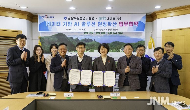 제이앤엠뉴스 | 경상북도농업기술원은 그리트(주)와 경북지역 스마트농업의 디지털 전환을 앞당기기 위해 힘을 모은다.