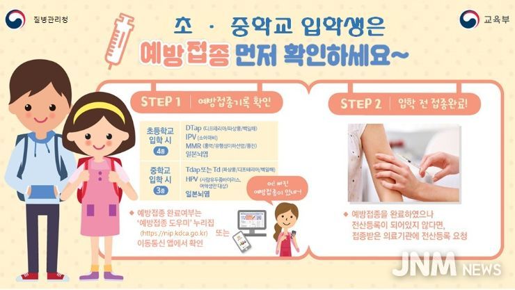 제이앤엠뉴스 | 옥천군은 3월에 입학하는 초·중학교 학생들의 감염병 예방과 건강 보호를 위해 필수예방접종 여부를 확인하여, 미접종자는 보건소 또는 위탁의료기관에서 접종을 완료하고 입학할 것을 독려했다.