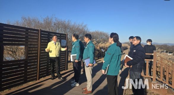 이번 점검은 신임 농정국장의 첫 공식 현장 행보로, 야생조류 AI 항원 검출(’25.11.10.) 이후 시행됐던 방역 조치가 종료되고, 탐방로와 생태학습시설 출입 통제가 해제 된 이후에도 방역관리가 느슨해지지 않도록 현장 대응체계를 점검하기 위해 마련됐다.