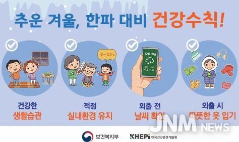 겨울철 한파 대비 건강 수칙으로는 △실내 적정 온도(18~20℃) 및 습도(40~60%) 유지 △ 외출 전 체감온도 확인 △ 외출 시 방한용품 착용 등이 있다.