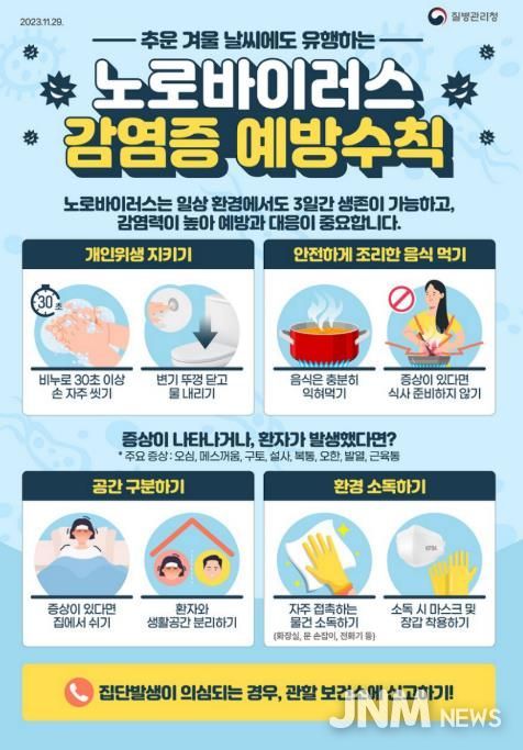 제이앤엠뉴스 | 오산시보건소는 최근 기온 하강으로 겨울철에 주로 발생하는 노로바이러스 감염증의 유행 가능성이 높아짐에 따라 시민들에게 각별한 주의를 당부했다.