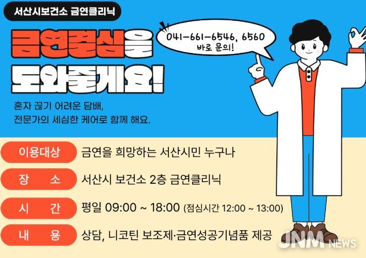 제이앤엠뉴스 | 서산시보건소는 지역 주민의 건강증진과 흡연율 감소를 위해 금연클리닉을 상시 운영하고 있다고 밝혔다.