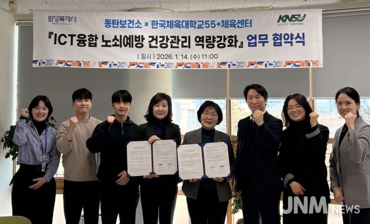 제이앤엠뉴스 | 화성시동탄보건소는 14일 한국체육대학교 학교기업 55+체육센터와 ‘인공지능(AI)·사물인터넷(IoT) 기반 어르신 건강관리사업과 연계한 노쇠 예방 및 신체활동 증진 프로그램 추진을 위한 업무협약’을 체결했다.