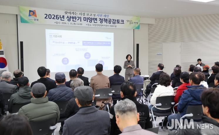 제이앤엠뉴스 | 안성시 미양면은 지난 1월 15일, 미양면행정복지센터 대회의실에서 주민 120여 명이 참석한 가운데 ‘2026년 상반기 미양면 정책공감토크’를 성황리에 개최했다.
