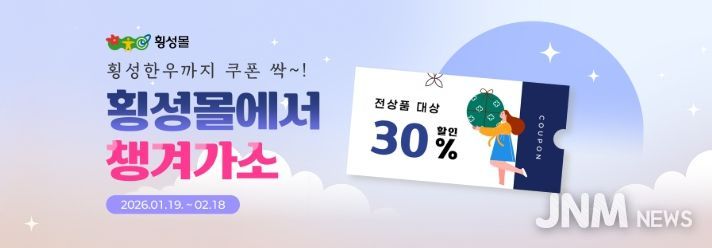 제이앤엠뉴스 | 횡성군은 설 명절을 앞두고 지역 중소기업 및 소상공인의 판로 지원과 민생 경제 활성화를 위해 ‘2026년 횡성몰 설 명절 특별 기획전’을 개최한다고 밝혔다.