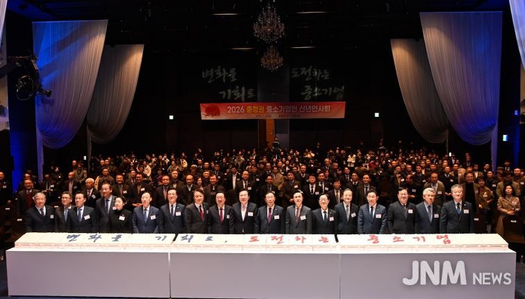 제이앤엠뉴스 | 김태흠 충남도지사는 27일 대전에서 열린 ‘2026년 충청권 중소기업인 신년 인사회’에 참석해 중소기업인들을 격려하고 새로운 도약을 함께 다짐했다.
