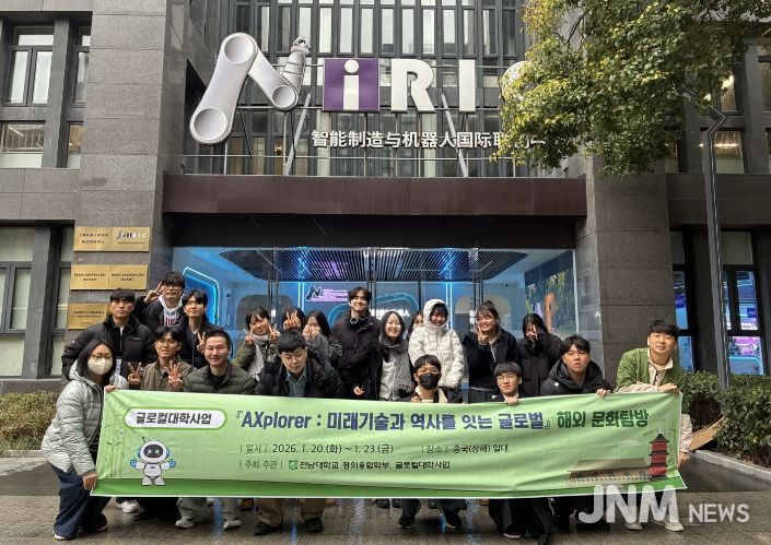 제이앤엠뉴스 | 전남대학교 창의융합학부(학부장 이인혜)는 ‘글로컬대학사업’의 일환으로 지난 1월 20일부터 23일까지 3박 4일간, 중국 상해와 항주 일대에서 무전공 학생들을 위한 글로벌 진로 탐방 프로그램 'AXplorer: 미래기술과 역사를 잇는 글로벌 탐방'을 성황리에 마쳤다.
