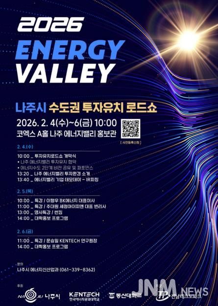 나주시는 오는 2월 4일부터 6일까지 3일간 서울 코엑스에서 ‘2026년 수도권 투자유치 로드쇼’를 열고 에너지 기업 유치 및 투자 활성화에 나선다고 29일 밝혔다.