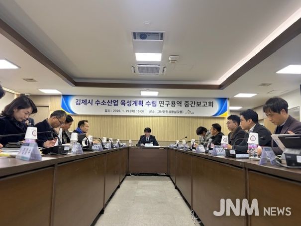 시는 지난 29일 김제시청 재난안전상황실에서 이현서 부시장 주재로 관련 공무원, 수소·에너지 분야 전문가, 유관기관 관계자 등 18명이 참석한 가운데 ‘김제시 수소산업 육성계획 수립 연구용역’중간보고회를 개최했다.