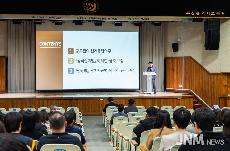 제이앤엠뉴스 | 부산광역시교육청은 지난 29일 오후 교육청 대강당에서 본청 및 교육지원청·직속기관 직원을 대상으로 공직선거법 관련 직장교육을 실시했다.