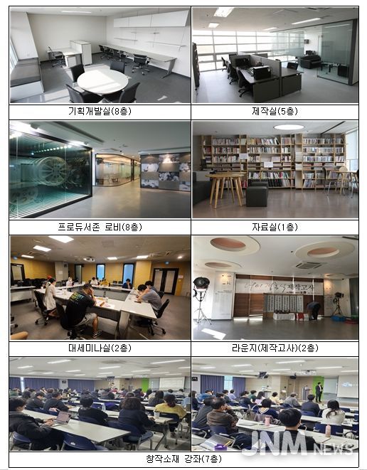 영화창작공간은 약 2,400평(7,898㎡) 규모의 대규모 영화・영상 콘텐츠 개발 공간으로 ▴감독존 18실 ▴프로듀서존 40실 ▴작가존 42실(개인실 20실, 오픈실 12실, 개별실 10실) ▴오피스존 5실 ▴프로덕션존 12실 등 총 117실로 구성돼 있다. 입주자는 개인 작업실 외에도 세미나실, 회의실, 자료실 등 다양한 공용공간을 자유롭게 이용할 수 있다.