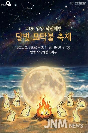 제이앤엠뉴스 | 양양군이 주최하고 (재)양양문화재단이 주관하는 ‘2026 양양 낙산해변 달빛 모닥불 축제’가 오는 2월 28일부터 3월 1일까지 일틀간, 낙산해변 B지구(행정봉사실 앞 백사장) 일원에서 개최된다.