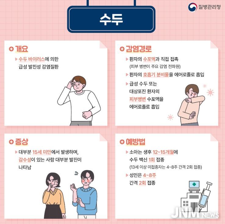제이앤엠뉴스 | 순천시는 최근 전국적으로 수두환자가 지속적으로 발생하고 있는 가운데, 관내에서도 소아·청소년을 중심으로 수두 환자가 발생함에 따라, 시민들에게 수두 예방을 위한 개인위생 수칙 준수를 당부했다.