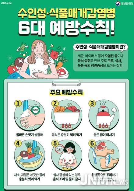 이에 철원군보건소는 감염병 예방을 위해 ▲흐르는 물에 30초 이상 비누로 손 씻기 ▲음식은 충분히 익혀 먹기 ▲물은 끓여 마시기 ▲채소와 과일은 깨끗한 물에 충분히 씻어 먹기 ▲설사 증상이 있는 경우 조리하지 않기 ▲조리 과정에서 위생 철저히 지키기 등 6대 예방 수칙을 준수해 달라고 당부했다.