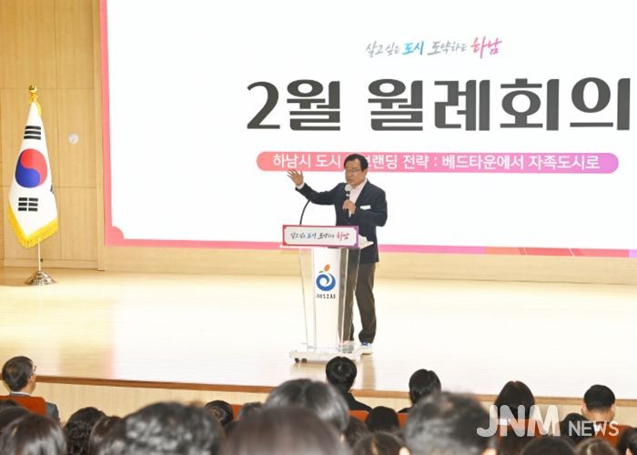 제이앤엠뉴스 | 하남시는 4일 별관 대강당에서 올해 첫 월례회의를 개최하고, 캠프콜번 개발 본격화 등 시정 주요 성과를 공유하며 ‘글로벌 경제 중심 도시 하남’을 향한 비전을 제시했다.