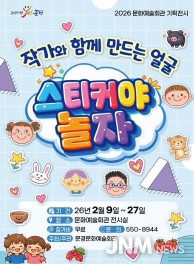 ‘스티커야 놀자’展은 2월 9일부터 2월 27일까지 문화예술회관 전시실에서 열리며, 관람은 무료다. 전시는 매일 오전 9시부터 오후 6시까지(설연휴 및 일요일 제외) 운영될 예정이다.