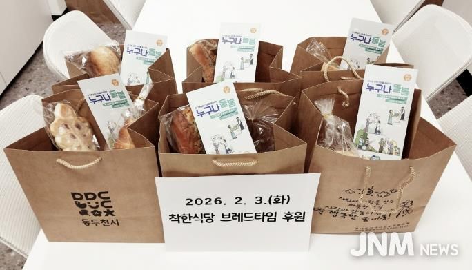 제이앤엠뉴스 | 동두천시 송내동 행정복지센터는 지난 3일 착한식당으로 지정된 ‘브레드타임’이 관내 취약계층을 위해 빵을 후원했다고 밝혔다.