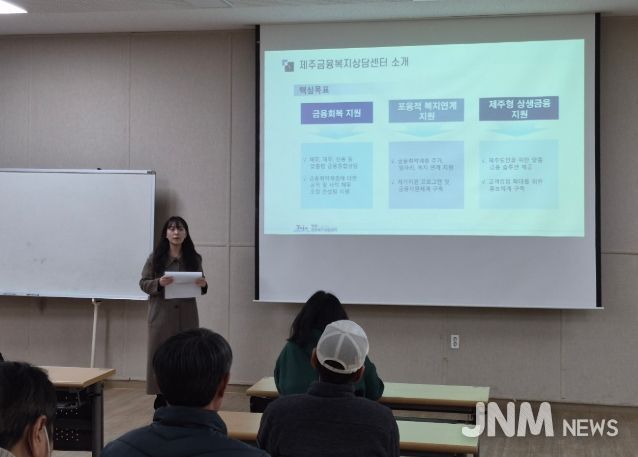 제이앤엠뉴스 | 제주금융복지상담센터(센터장 부성진)는 2월 3일 서귀포오름지역자활센터를 방문해 자활근로 참여주민을 대상으로 금융복지 상담 안내 및 교육을 실시했다고 밝혔다.