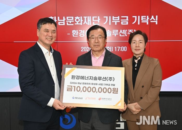 제이앤엠뉴스 | (재)하남문화재단은 2월 4일, 하남시청에서 환경에너지솔루션㈜으로부터 문화자치 활성화를 위한 기부금 1천만 원을 전달받았다고 밝혔다. 이날 기부식에는 이현재 하남시장을 비롯해 기업 및 재단 관계자들이 참석해 지역 상생과 ESG 실천의 의미를 공유했다.