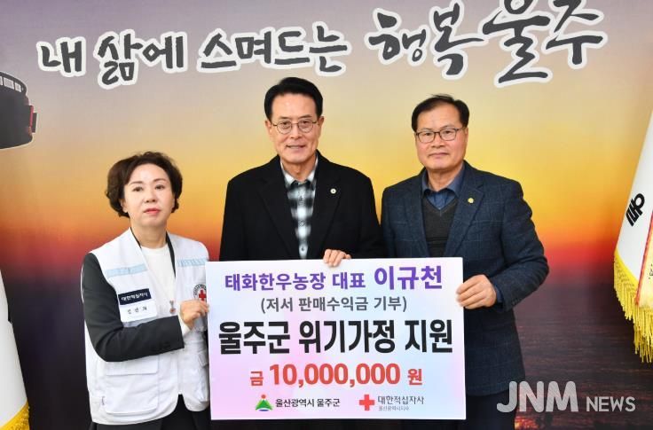 제이앤엠뉴스 | 이규천 태화한우농장 대표가 5일 울주군 위기가정을 돕기 위해 성금 1천만원을 전달했다.