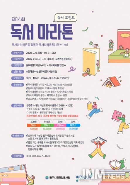 제이앤엠뉴스 | 원주시립중앙도서관은 이달 6일부터 제14회 원주시 독서마라톤 참가자를 모집한다.