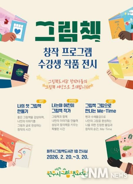 제이앤엠뉴스 | 원주시 그림책도서관은 2월 20일부터 3월 20일까지 도서관 1층 전시실에서 ‘2025년 그림책 창작 프로그램 수강생 작품 전시’를 개최한다.