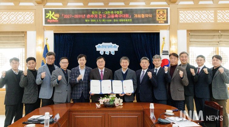 협약서는 2027~2031년 춘·추계 전국 고등축구대회의 개최 시기와 대회의 성공적인 개최를 위한 합천군과 대한축구협회의 상호협력 내용을 담고 있으며, 대회는 내년 춘계대회부터 2031년 추계대회까지 5년간 합천군 군민체육공원 인조구장 일원에서 개최된다.