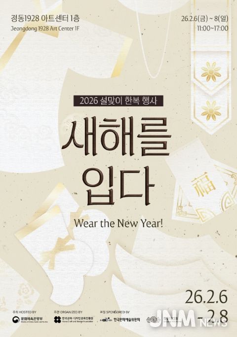 제이앤엠뉴스 | 문화체육관광부는 한국공예·디자인문화진흥원과 함께 2026년 설을 맞이해 2월 6일부터 8일까지 정동1928 아트센터(서울 중구)에서 한복 문화 확산 캠페인 ‘새해를 입다’를 개최한다. 이번 캠페인은 민족 최대의 명절인 설을 맞이해 우리 고유의 의복인 한복의 가치를 되새기고, 일상에서 한복을 즐기는 문화를 널리 알리기 위해 기획한 행사다.