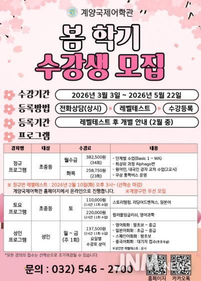 제이앤엠뉴스 | 인천 계양국제어학관이 2026년 봄 학기 프로그램 수강생을 모집한다고 밝혔다.