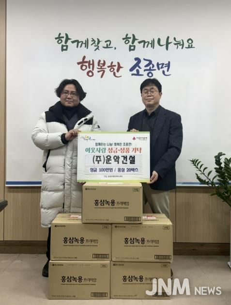 제이앤엠뉴스 | 가평군 소재 운악건설은 설 명절을 앞두고 최근 조종면 행정복지센터를 방문해 성금 100만 원과 홍삼 20박스를 기탁하며 이웃사랑을 실천했다.