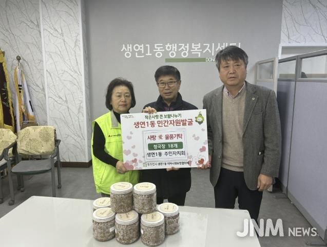 제이앤엠뉴스 | 동두천시 생연1동 행정복지센터는 지난 5일, 생연1동 주민자치회가 직접 만든 ‘사랑 愛 청국장’을 관내 경로당 어르신들에게 전달했다고 밝혔다.