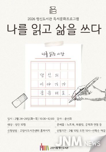 제이앤엠뉴스 | 고양특례시 행신도서관은 일반 성인을 대상으로 하는 글쓰기 프로그램 ‘나를 읽고 삶을 쓰다’를 운영한다.