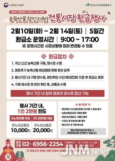 이번 행사는 농림축산식품부와 해양수산부가 주관하며, 전통시장에서 국산 농축·수산물을 구매한 소비자에게 구매금액의 일부를 온누리상품권(지류)으로 환급해 주는 방식으로 운영된다.