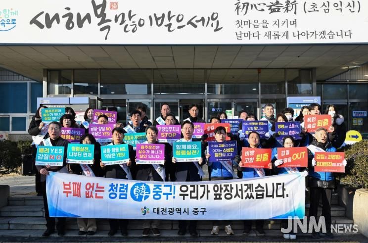 제이앤엠뉴스 | 대전 중구는 설 명절을 앞둔 9일 아침 출근길 구청사 현관 및 각 부서를 방문하여 음주운전 근절 및 청렴 문화 확산을 위한 청렴 캠페인을 전개했다고 밝혔다.