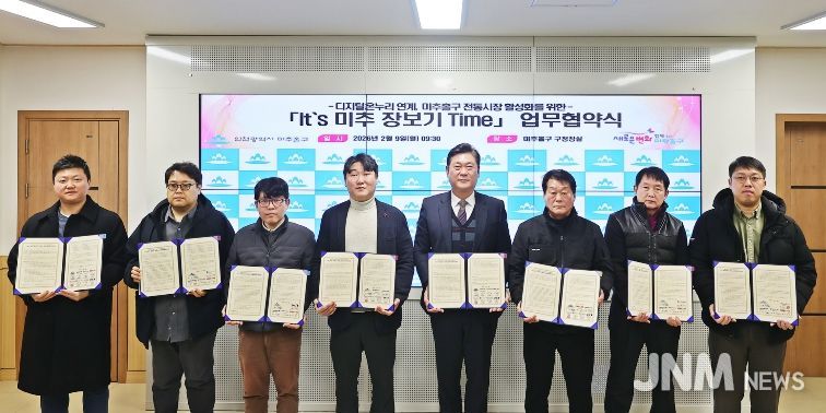 제이앤엠뉴스 | 인천 미추홀구는 9일 전통시장의 디지털 경쟁력을 강화하고 주민들에게 편리한 쇼핑 환경을 제공하기 위한 ‘It’s 미추 장보기 Time’ 업무협약을 체결했다.
