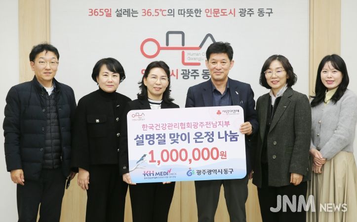 제이앤엠뉴스 | 광주 동구는 지난 6일 한국건강관리협회 광주전남지부(본부장 박종석)가 설 명절을 맞아 온정나눔 기부금 1백만 원을 동구에 기탁했다고 밝혔다.