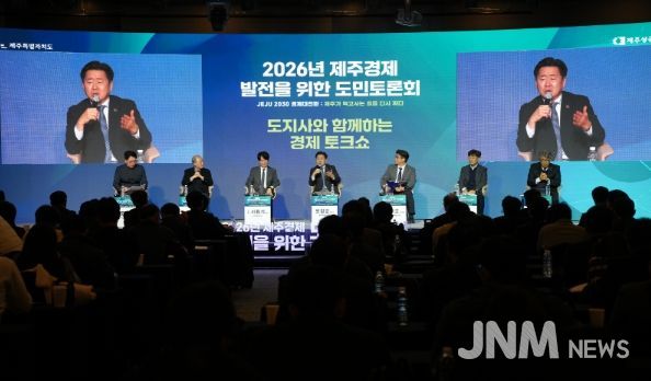 제주도와 제주상공회의소는 9일 오후 2시 한라컨벤션센터에서 ‘2026년 제주경제 발전을 위한 도민토론회’를 열었다.