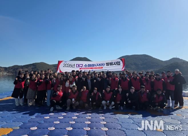 제이앤엠뉴스 | 통영시는 지난 9일 한국수산업경영인 통영시연합회 회원들과 어업인 50여 명이 참여한 가운데 광도면 죽림 해역에 겨울철 고부가가치 어종인 대구 자어 675만미를 방류했다.