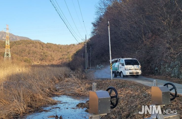 군은 현재 수시로 차량 소독을 할 수 있는 거점 소독시설 1곳을 24시간 운영하고, 군 차량방제차 1대와 축협 공동방제단 방역 차량 4대를 동원해 특별방역 추진 중이다.