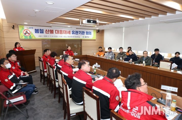 제이앤엠뉴스 | 예천군은 11일 오전 10시 군청 영상회의실에서 박창배 부군수 주재로, 관계 공무원과 예천경찰서, 예천소방서, 공군 제16전투비행단, 육군 제3260부대, 예천군 산림조합 등 유관기관이 참석한 가운데 산불 대응태세 회의를 개최했다.