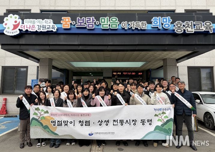 제이앤엠뉴스 | 홍천교육지원청은 2월 11일, 홍천전통시장 일원에서 설 명절을 맞아 공직자의 청렴 실천 의지를 다지고 지역사회와 협력하는 ‘설맞이 전통시장 동행’ 행사를 개최했다.