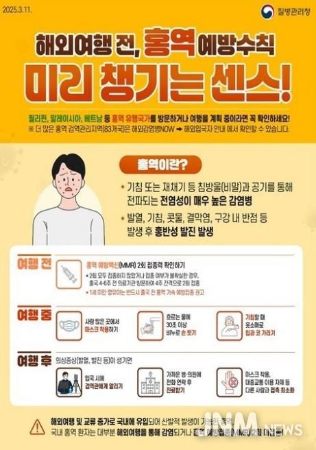 우리나라처럼 평소 홍역 발생이 거의 없는 국가에서도 해외 유입 사례로 인해 지역사회 전파 위험이 커지고 있어 여행 전 예방접종의 중요성이 더욱 강조되고 있다.