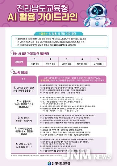 제이앤엠뉴스 | 전라남도교육청은 교사와 학생이 학교 현장에서 안전하고 책임 있게 AI를 활용할 수 있도록 ‘전남 AI 활용 가이드라인’ 개발을 마무리하고, 도내 모든 학교에 보급했다.