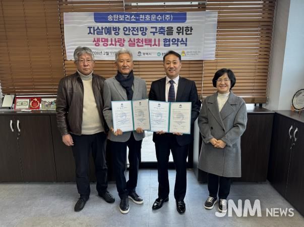 제이앤엠뉴스 | 평택시 송탄보건소는 지난 11일 천호운수주식회사와 생명 존중 문화 확산과 자살 예방을 위한 ‘생명사랑 실천택시’업무협약을 체결했다.
