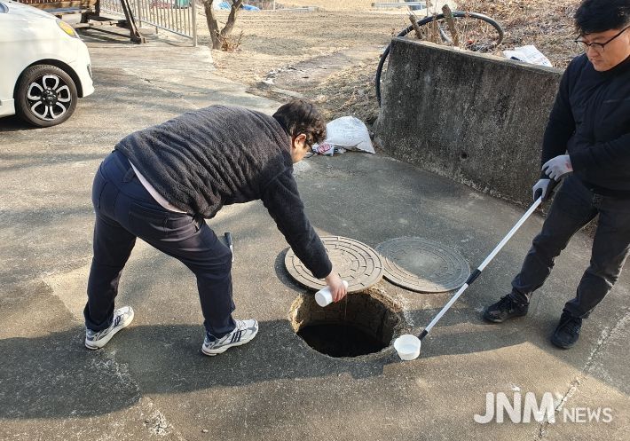 제이앤엠뉴스 | 예천군은 12일 경로당 정화조 및 공중화장실을 대상으로 유충구제제를 사용한 ‘동절기 모기 유충구제 사업’을 실시했다.